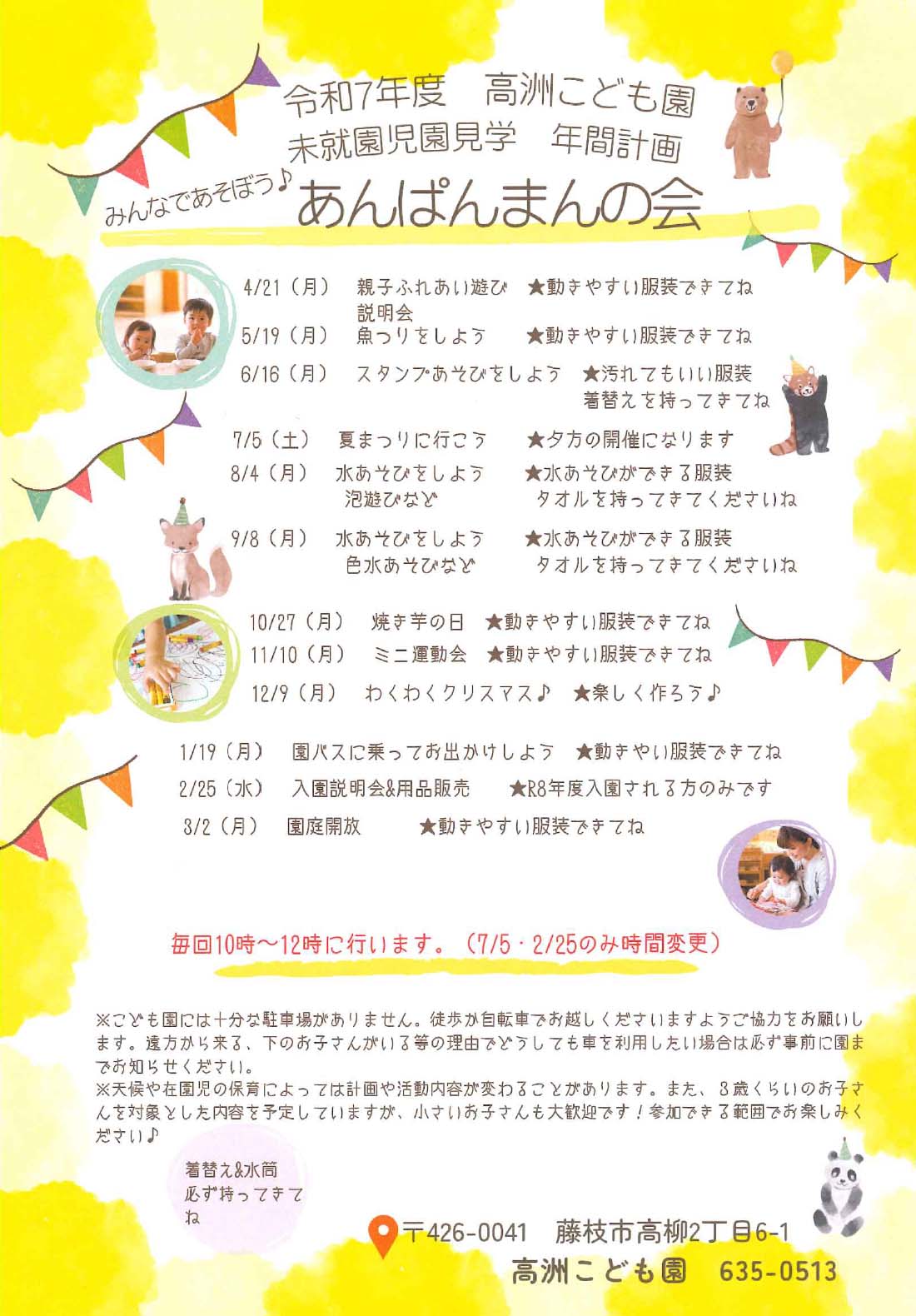 令和7年度 高洲こども園 未就園児幼稚園見学 年間計画
